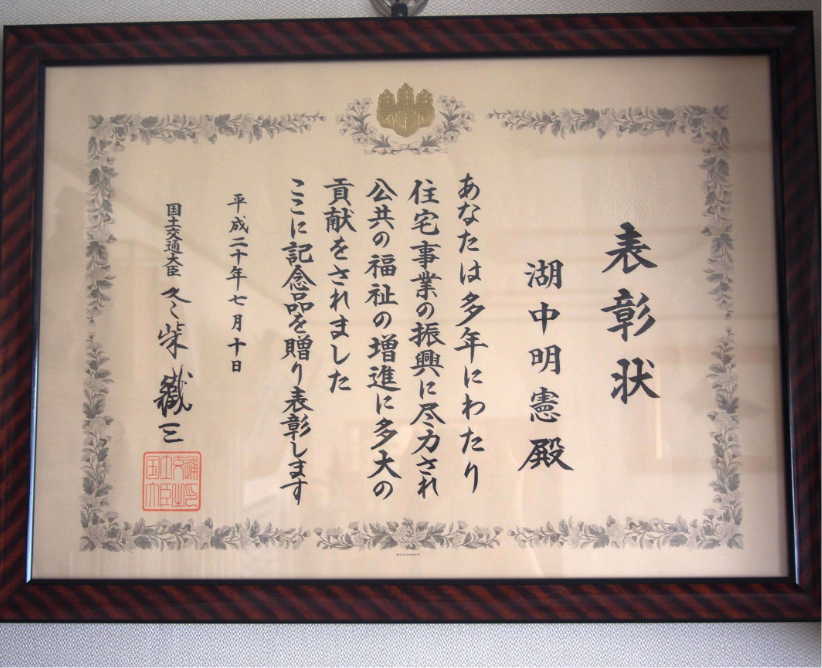 住宅事業の振興に尽力し、公共の福祉の増進に多く貢献したとして