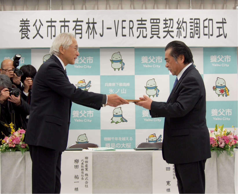 養父市より二酸化炭素などの排出削減、吸収量を販売可能な形とした
