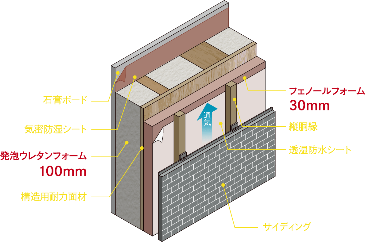 内外に断熱材を充填・付与した「W断熱構造」により、