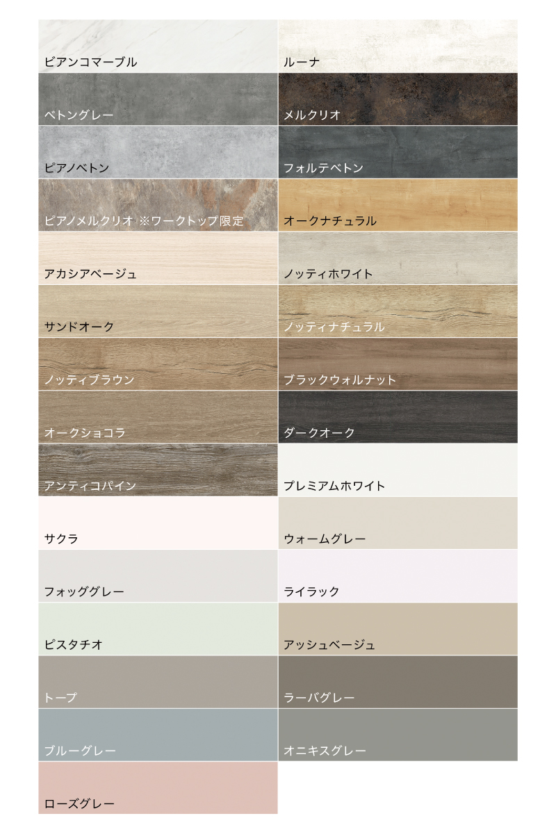 キッチンのレイアウトは11スタイル、カラーは29種類