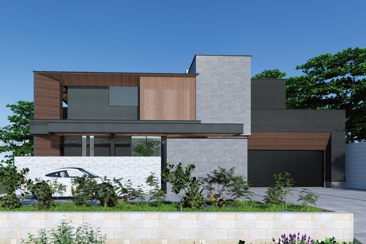 木目×グレーのモダンな邸宅の施工例を追加しました。