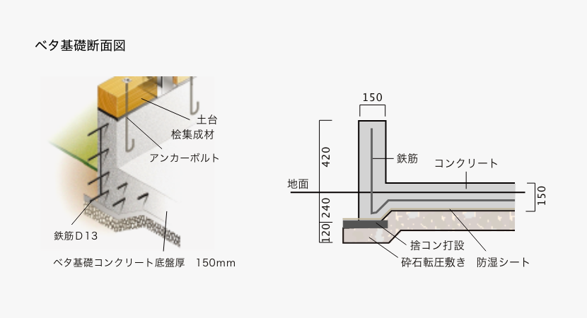建物を支える高耐久ベタ基礎