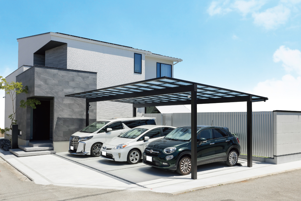 白とグレーの外観が美しく際立つモダンスタイルの住まい。 回遊動線で家事も身支度もスムーズに、心地よく暮らせる設計で...