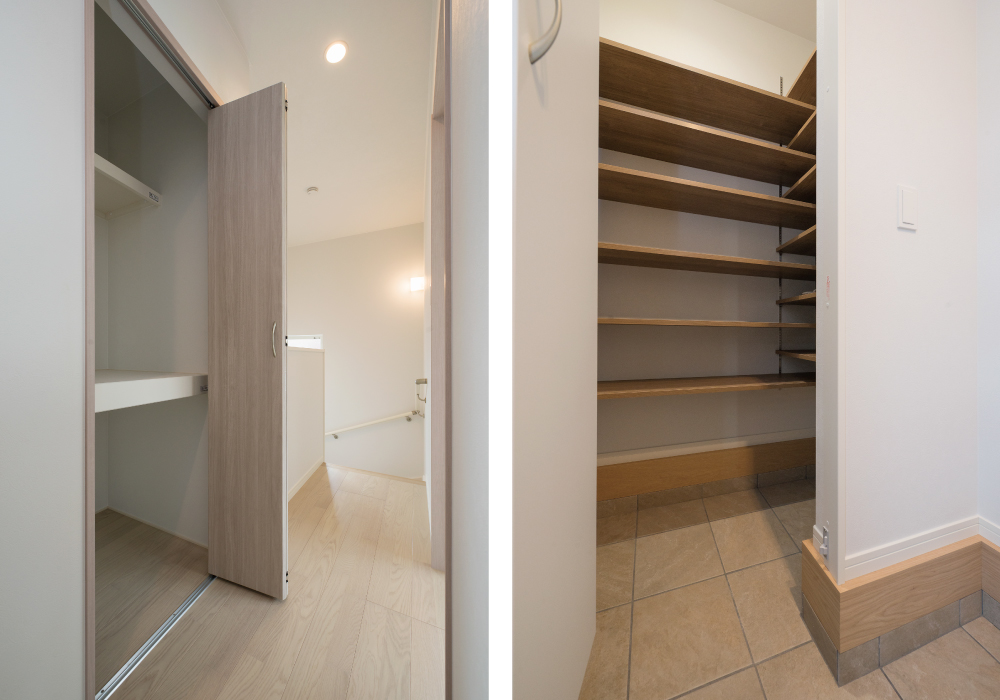 シューズインクロークや2階ホール収納など、各所に設けられた豊富な収納スペース。室内がスッキリ片付きます!