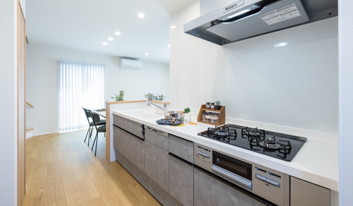 コンロとワークスペース前を壁にすることで油はね等を防ぎ、集中して料理ができます。