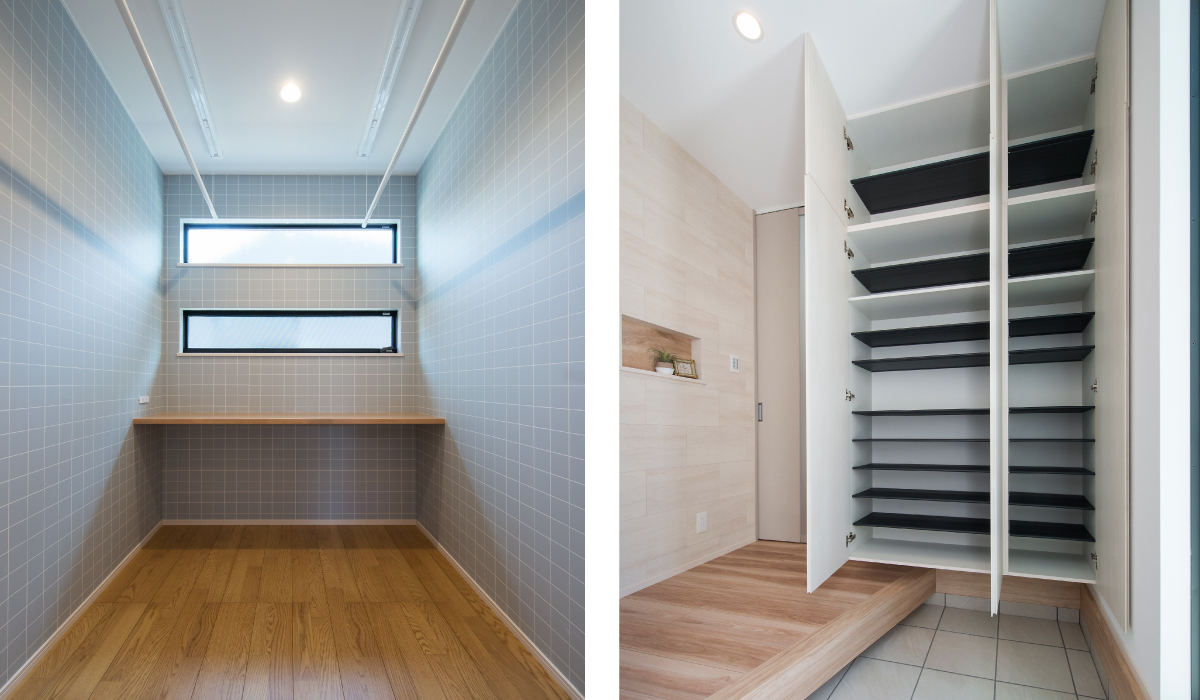 ランドリースペースや大容量のシューズインクロゼットなど、嬉しい空間がいっぱい。
