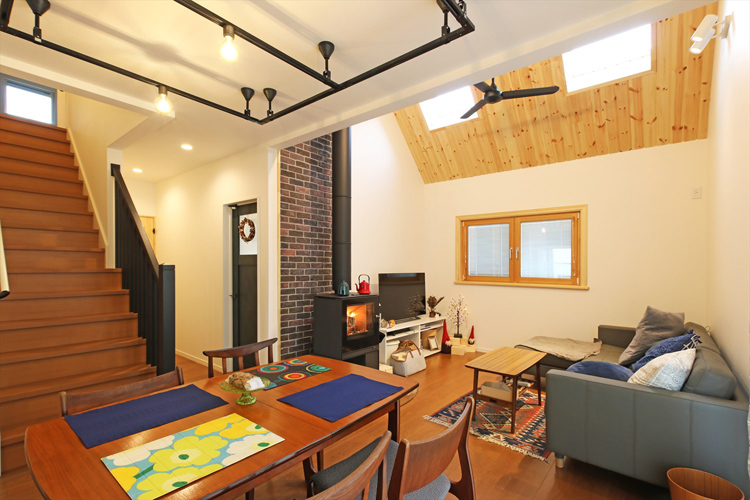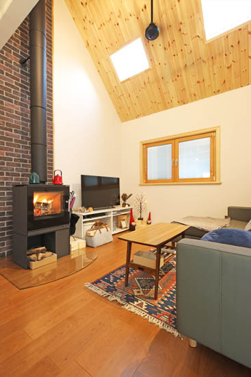 まるでペンションに訪れたような雰囲気のLDKです。 暖炉で揺らめく炎が時間の経つのを忘れさせてくれます。