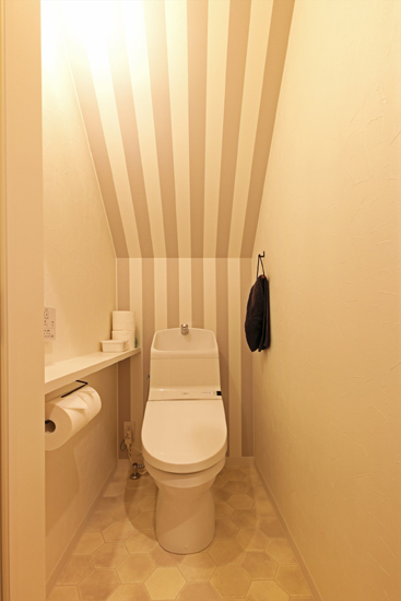 K様お気に入りの立体感のあるトイレ。大屋根ならではの印象的な空間です。