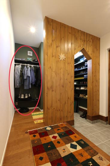 ご主人様の仕事着をパッとかけられるパイプスペース。 美しさと収納力、機能性を併せ持つ優れもの空間です。