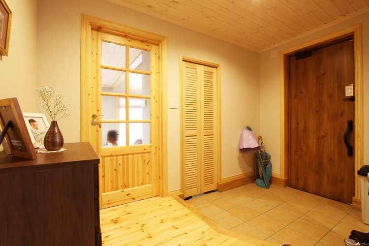 床とドアはナチュラル色で、天井を白染めにされました。北欧住宅本来のナチュラルカラーがとても新鮮です。