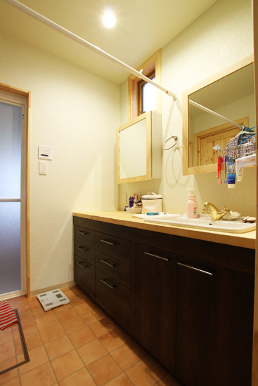 お化粧も出来るように、カウンターを長くしてミラーを2面付けています。カスタマイズは造作ならでわです。