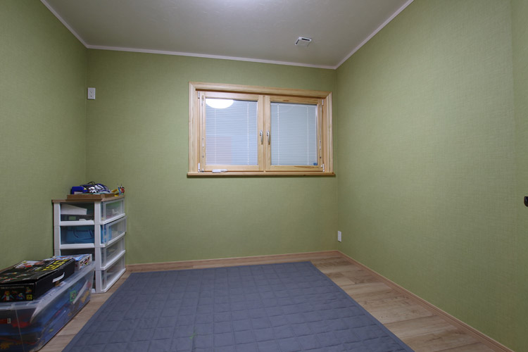 二男様のお部屋はグリーンで。 元気いっぱいの二男様にピッタリです。