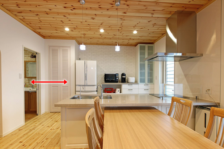 水回りやお手洗いから優しく目線を妨げてくれる垂れ壁。O様の工夫が随所にいかされています。