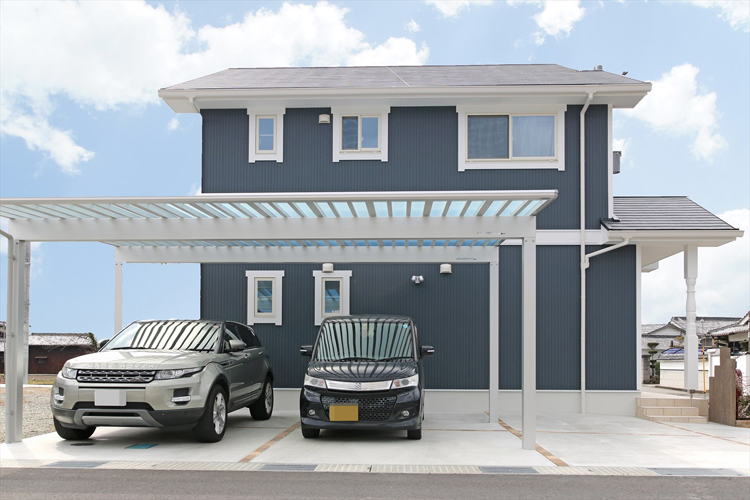 やや寒冷地であるため、朝のフロントガラスの凍結はやっかいなもの。 広いカーポートを設置し、凍結による朝のストレスを無くしています。勿論、積雪対応のカーポートです。
