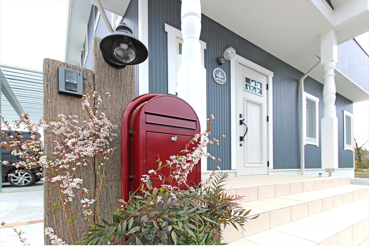 スウェーデンホーム独特の印象的なファサードに、ネイビーブルーの 鮮やかな外壁をセレクトされたO様。白とネイビーブルーが見事に調和し、街のランドマークになっています。