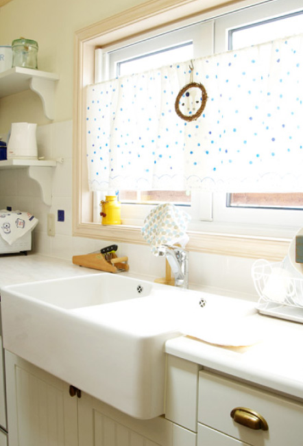 白を基調とした、スウェーデンのキッチン。2層シンクが印象的です。