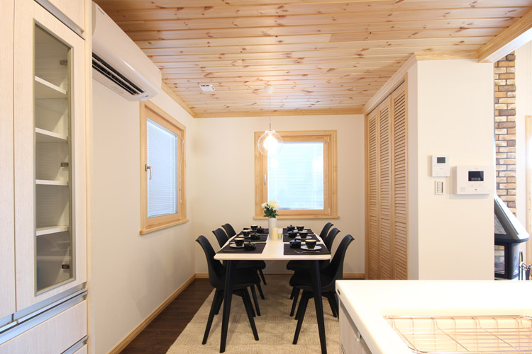 北欧製のダイニングテーブルセットはややシンプルなテイスト。テーブル上の飾りつけも北欧直輸入です。