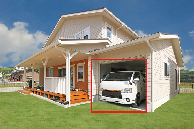 釣りやアウトドアに大活躍のハイエースがしっかり入るビルトインガレージ。外観にも華を添えています。もちろん使い勝手も抜群に良いです。