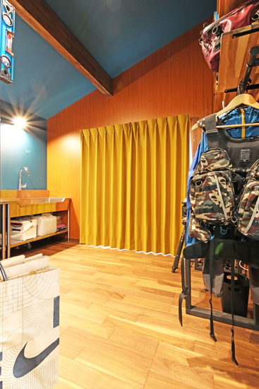 ガレージに車を入れれば雨天でも濡れずにこの部屋に釣果を搬入できます。まさに“好き”を詰め込んだ家です。