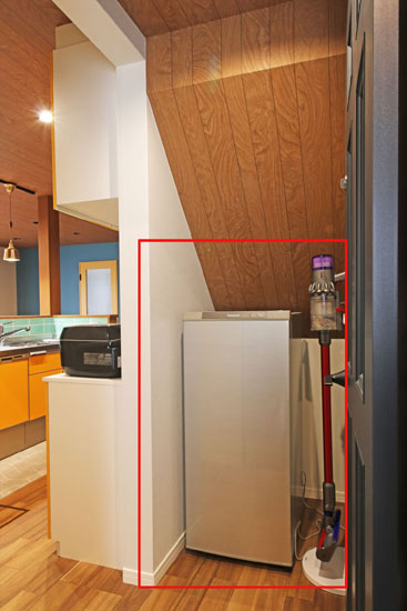 実はフィッシャーマンのY様。大量の釣果を冷凍できるフリーザーがあります。釣り部屋とキッチンの間の空間にレイアウトされています。
