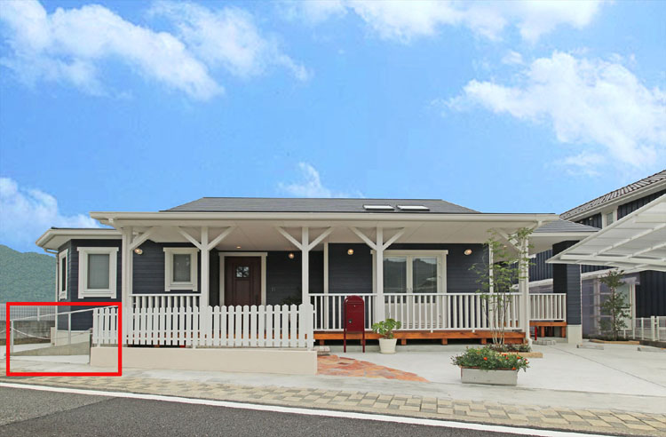 正面からのアプローチ以外に、サイドにはスロープを設けています。将来、祖父母様やご両親が住むことになっても大丈夫な設計です。