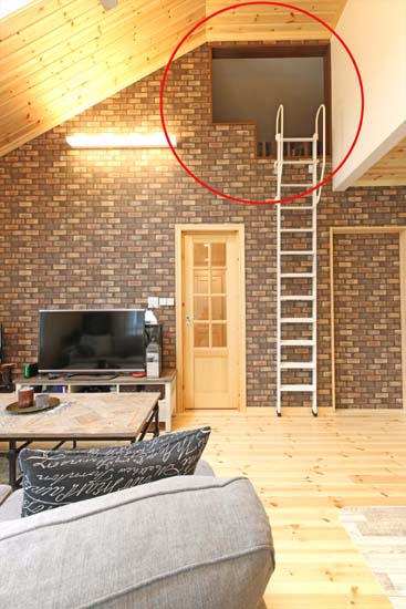 平屋の特徴を利用し、屋根裏にはロフトを設けました。物置や洗濯干場にも利用されています。