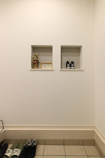 玄関のニッチにはご長男の靴が飾られています。 撮影時は赤ちゃんでしたので、履かれる日が 楽しみです。