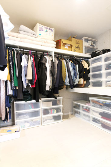 主寝室から繋がる広いウォークインクローゼット。 衣類が少々増えても大丈夫です。