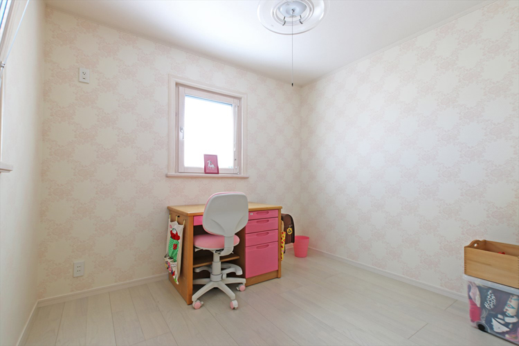 今は机をおいているお嬢様の部屋。ピンク色をベースにしてかわいい雰囲気タップリです。