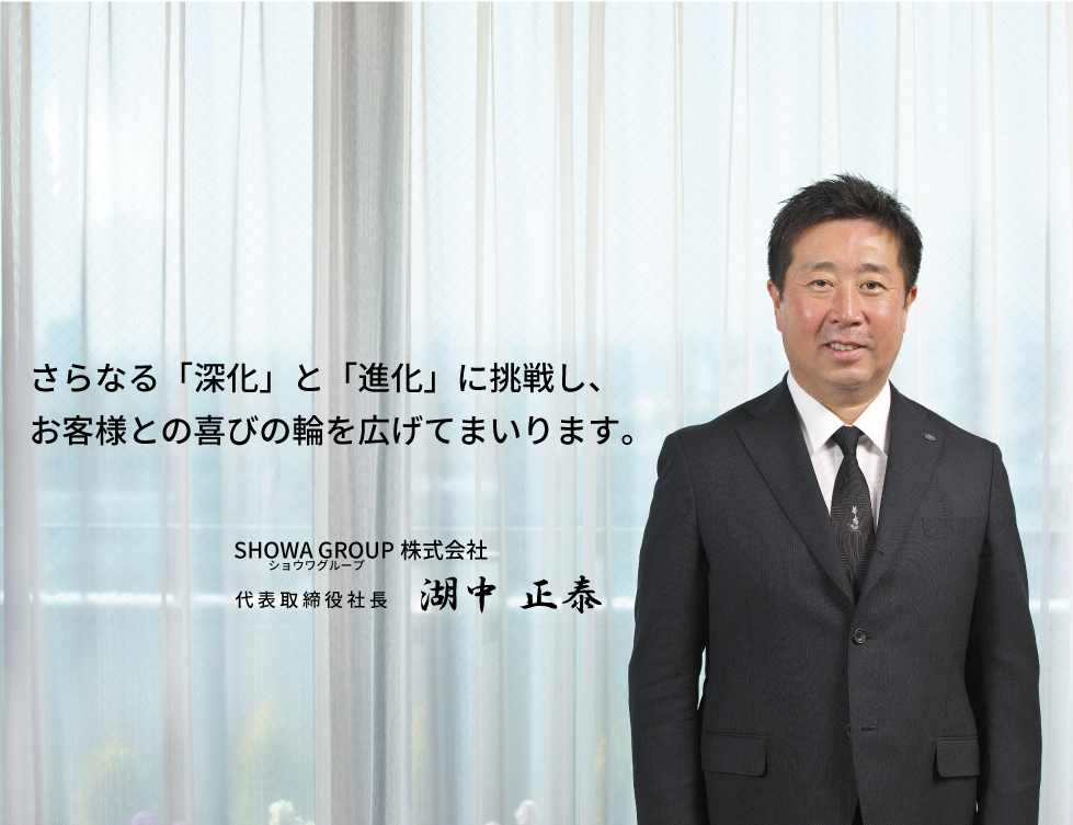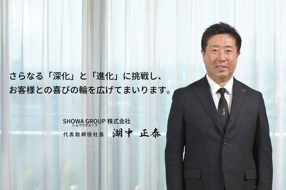 SHOWA GROUP(ショウワグループ)株式会社は、1957年(昭和32年)10月に故湖中速雄によって創立されて以来、数多くのお客様と従業員、そして関係各社からご支援・ご愛顧をいただき、無事に創立65周年を迎えることができました。従業員を代表し、深く感謝申し上げます。