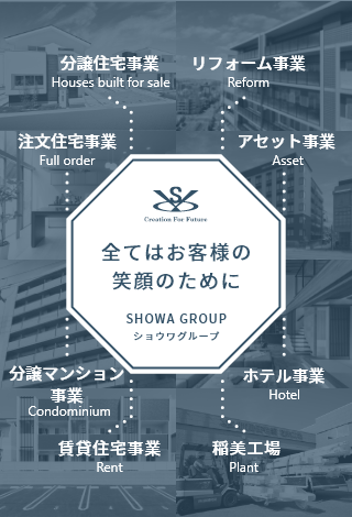 創業時からショウワグループ㈱の事業の根幹をなしてきた分譲住宅事業。その底流には「住む人が誇りに思う家づくり」というポリシーが脈々と流れ、常に「人に優しく強い」家を目指してきました。ショウワグループでは「この家に住んで良かった」だけでなく「この街で暮らして良かった」と言っていただけるよう、美しい街並みづくりから取り組み、自社一貫施工と万全のアフターサービスで永く愛され続ける住まいをお届けしています。