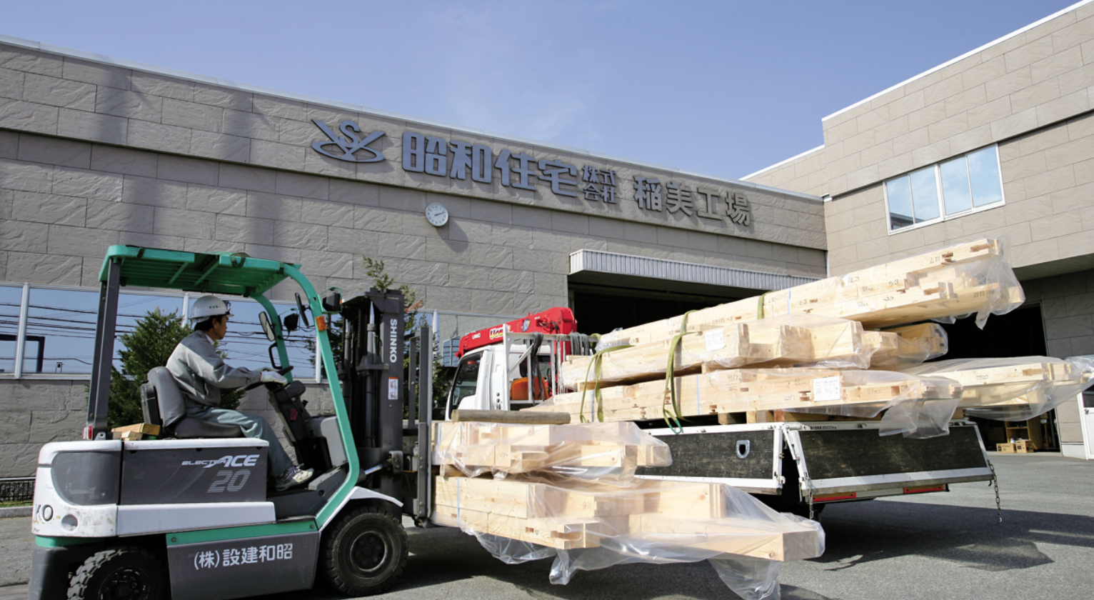 ショウワグループ㈱では構造材、造作材などすべてを自社でプレカットしています。自社プレカット工場においては全自動プレカット機等、最新鋭の機械設備を取り入れて、コンピューター制御によって次々と高精度な木材を生産。一括生産、加工を行うことでロスを極力少なくするだけでなく、工期を短縮、品質を均一化することにも成功しました。さらに、材料を一括で大量仕入れすることで、さらなるコストダウンも実現しています。