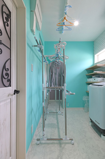 大きく作った洗面所は大きな物干場としても大活躍。無駄のない空間利用をしています。