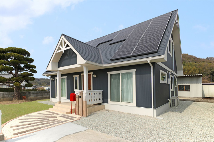 築100年以上の本家普請の母屋を解体して建て替えた家は N様が大好きなネイビーブルー色のビックルーフスタイルのスウェーデンホーム。約10KWの太陽光発電も搭載したZEH仕様です。クラシカルな外観に最新の機能を備えた住宅になりました。