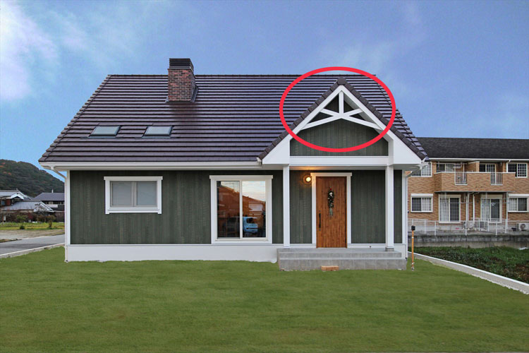 K様が小さいころから憧れ続けた大屋根(ビックルーフ)の外観です。アトリエやLDKもしっかりまとまっていて、使い勝手もよくできています。正面の妻飾り(ゲーブルオーナメント)はK様デザインのオリジナルです。