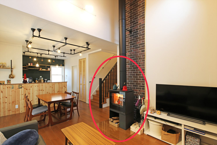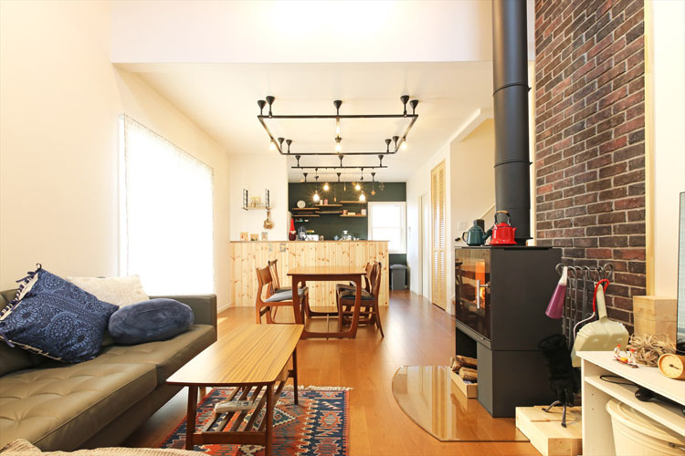 まるでペンションに訪れたような雰囲気のLDKです。 暖炉で揺らめく炎が時間の経つのを忘れさせてくれます。