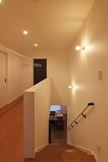 外から見えない2階廊下に作った洗濯物干しスペース。暖炉の熱で、洗濯物もよく乾くそうです。
