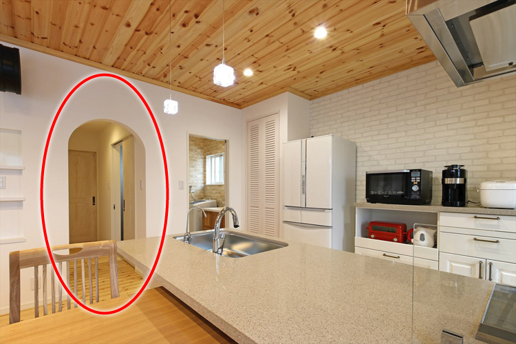 水回りやお手洗いから優しく目線を妨げてくれる垂れ壁。O様の工夫が随所にいかされています。
