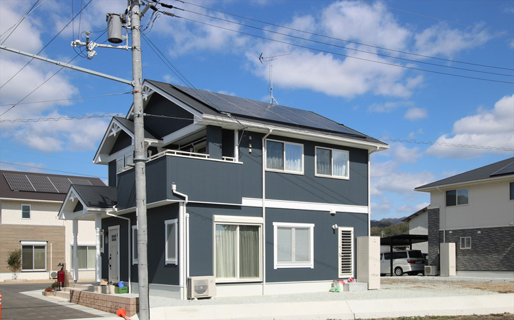 実はZEH(ネットゼロエネルギーハウス)を採用されたO様邸。 約5KWの太陽光発電システムが搭載されています。スウェーデンホーム本来の高断熱、高気密に、ハイテク高性能をも 併せ持った家になりました。