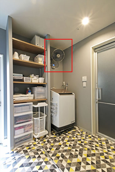 洗濯物干場としても利用する脱衣場、衣類を素早く乾かす為のファンとしても活用できます。