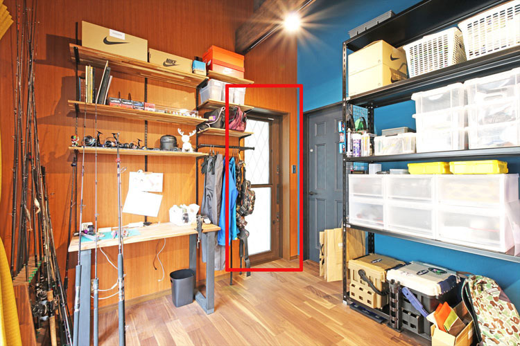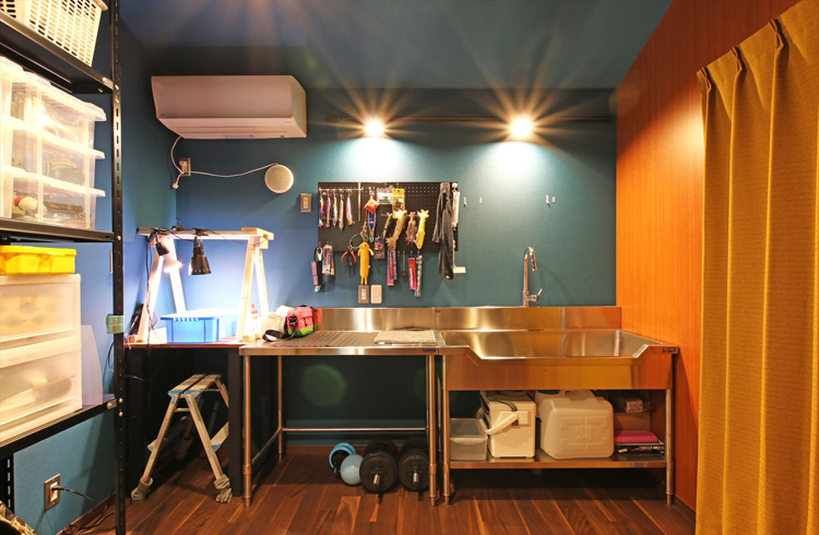 ガレージに車を入れれば雨天でも濡れずにこの部屋に釣果を搬入できます。まさに“好き”を詰め込んだ家です。