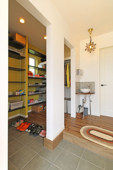 お外で遊んだお子様が汚れたままでもさっとお風呂へアクセスできます。