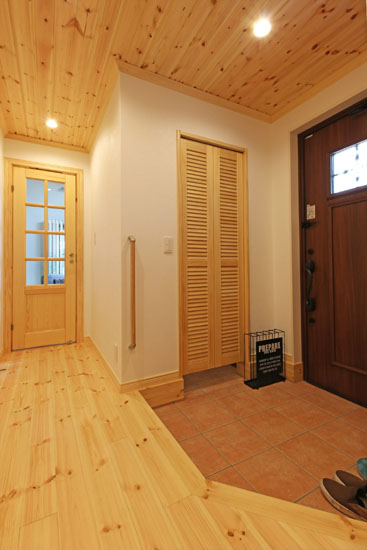 調湿効果の高いパイン材を収納の天井にも貼りました。湿気を吸うのと同時に消臭効果もあります。