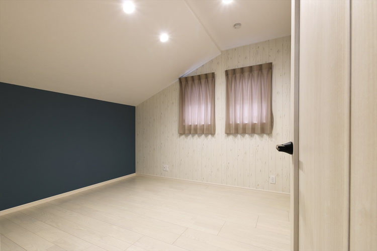 まだ赤ちゃんのご長男様の将来のお部屋。斜めの天井が異国情緒たっぷりです。