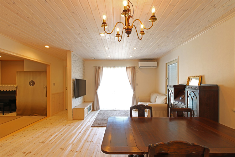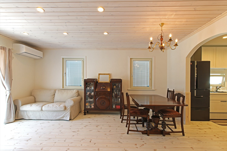 以前から大事に使われてきた英国製のアンティーク家具を白染の北欧パイン建材にコーディネイト。 ゆっくりと時間が流れる空間に仕上がりました。